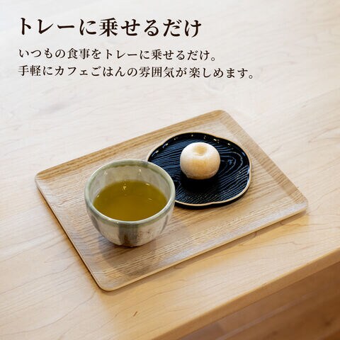 食卓をカフェスタイルにいつもの食事をトレーに乗せるだけ。手軽にカフェの雰囲気を楽しめます。