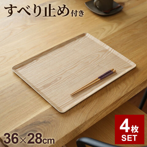 木製トレー ノンスリップ M(36×28cm) 4枚セット ナチュラル NC22-02 | お盆 滑らない トレイ おしゃれ 滑り止め ナチュラル カフェトレー 天然木 ランチョンマット すべらない 膳 おぼん 木目 すべり止め セットでお得 まとめ買い