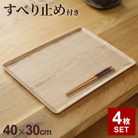 木製トレー ノンスリップ L(40×30cm) 4枚セット ナチュラル NC22-03 | お盆 滑らない トレイ おしゃれ 滑り止め ナチュラル カフェトレー 天然木 ランチョンマット すべらない 膳 おぼん 木目 すべり止め セットでお得 まとめ買い