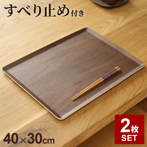 木製トレー ノンスリップ L(40×30cm) 2枚セット ブラウン NC22-08 | お盆 滑らない トレイ おしゃれ 滑り止め ナチュラル カフェトレー 天然木 ランチョンマット すべらない 膳 おぼん 木目 すべり止め セットでお得 まとめ買い