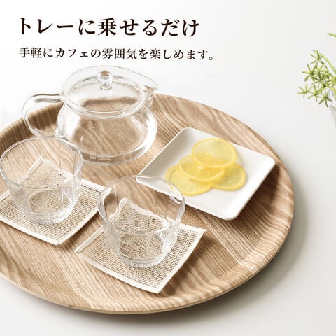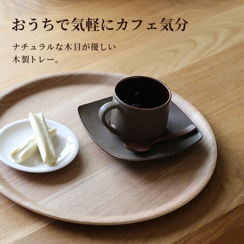 おしゃれな木製トレー。お茶出しに最適な丸型。