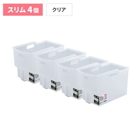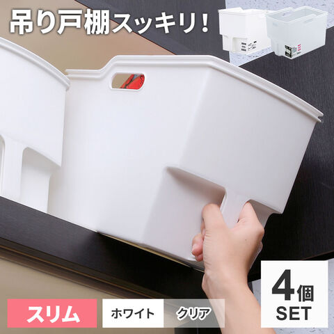 キッチン収納 吊り戸棚ボックス スリム クリア 4個セット F2401 | 吊り戸棚収納ボックス パントリー収納 収納ケース ストッカー ボックス 取っ手付き 持ち手付き 吊戸棚 整理ボックス 戸棚 収納 食器棚 台所収納 プラスチック