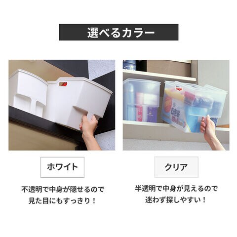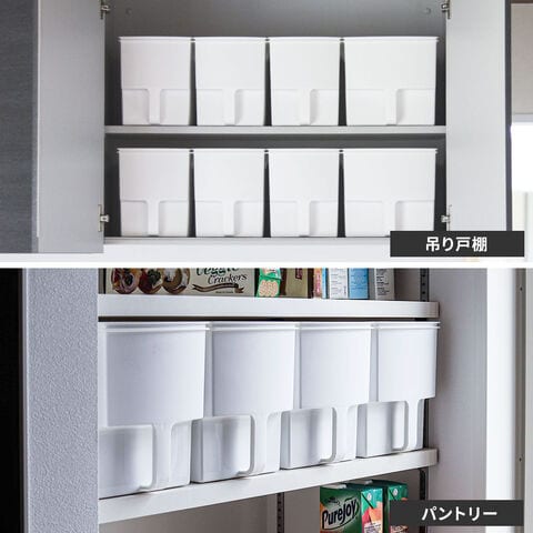 カラー不透明な「ホワイト」は、中身が隠せるので見た目にもスッキリ。見せる収納としてパントリーでも使用できます。