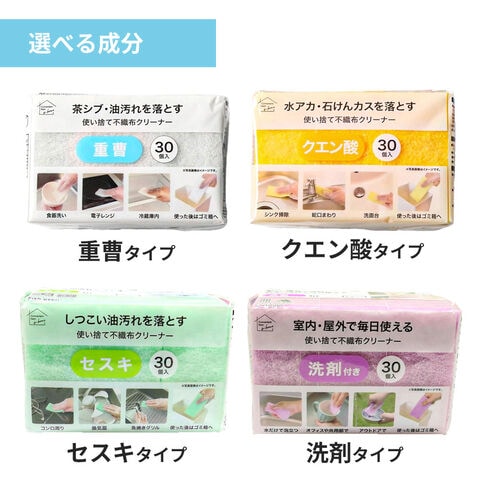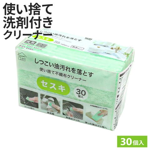 洗剤付き スポンジ 使い捨て不織布クリーナー セスキ 30個入 | 掃除 使い捨て 洗い物 キッチン シート 収納 便利 水垢 リビング 冷蔵庫 洗面台 お風呂 シンデレラフィット ギトギト汚れ 衛生的 茶渋 シンク