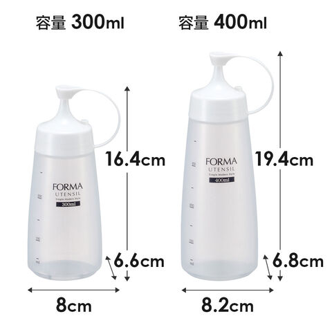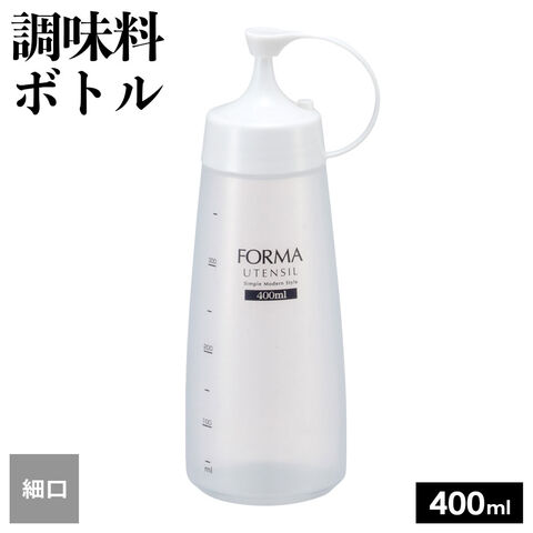 詰替容器 フォルマ 調味料ボトル ホワイト(細口) 大 400ml A2141 | ドレッシング 調味料入れ オイルボトル ソース 醤油差し 油 ケチャップ マヨネーズ マスタード スクイーズ 液ダレしにくい シャンプー ボディーソープ メモリ