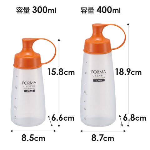 詰替容器 フォルマ 調味料ボトル オレンジ(広口) 大 400ml A2144 | ドレッシング 調味料入れ ソース 顆粒だし コンソメ トリートメント ふりかけ スパイス ピューレ スクイーズ 液ダレしにくい ジュレ すりごま メモリ