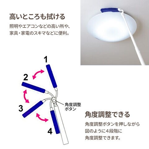 カーブや狭い場所、高い場所もおまかせ伸縮タイプなので、照明やエアコンなどの高い所や、家具・家電のスキマなどに便利です。