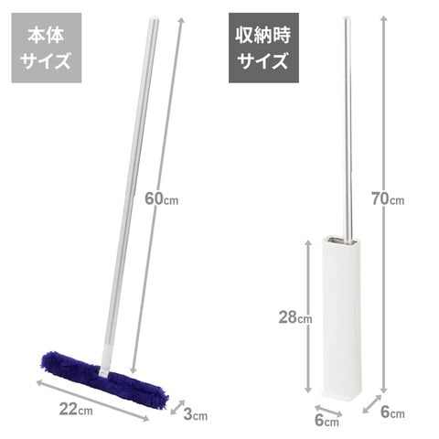 ケースに通すだけでホコリがとれる、高密度ブラシの、狭い階段でも掃除しやすいショート柄のフローリングワイパー。