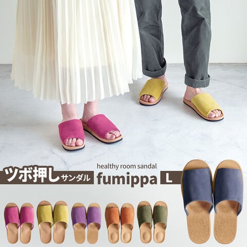 スエードがオシャレな雰囲気に。指圧箇所を変えながらスリッパのカラーも変えられるから、何種類か揃えて使い分けてもGOOD。