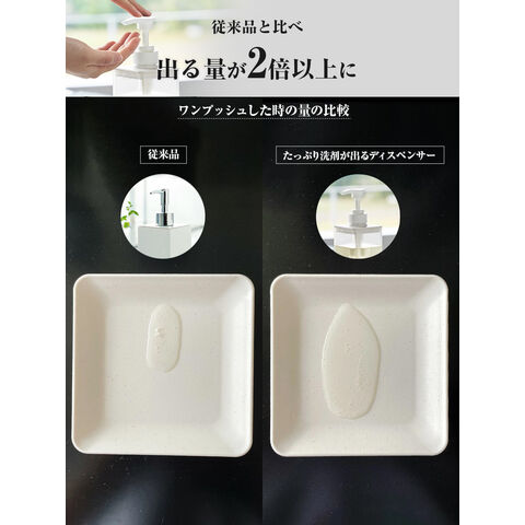 出る量が2倍以上アップ従来品に比べて1プッシュで出る液体の量が1.6ccから3.6ccにアップ。プッシュの回数が減らせてストレスフリーに。