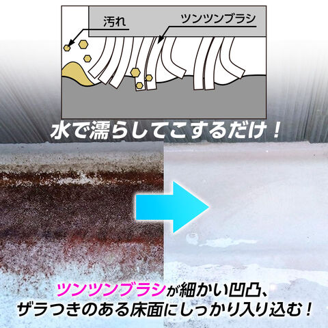 洗剤不要でしっかり落とすツンツンブラシがこびりついた頑固な汚れをかき出します。