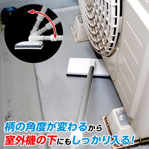 室外機の下もスッキリ【可動するヘッド】ヘッドが可動するので柄の角度が変えられ、室外機や下駄箱の下にもブラシが届く。柄は目盛に合わせて4ヶ所で固定することが可能。