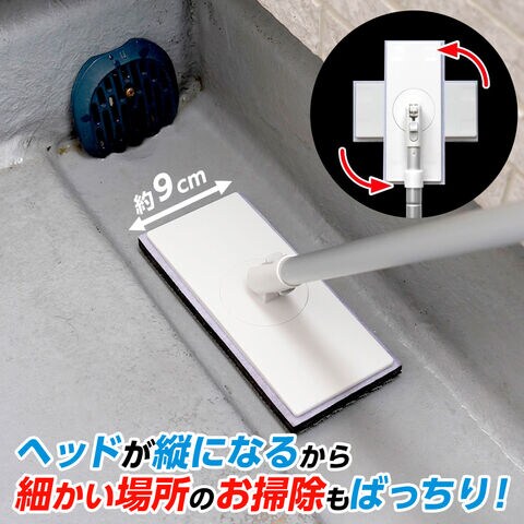 ヘッドが縦にもなるから、ベランダの溝や細かい隙間のお掃除にもぴったりです。※ヘッド幅9cm