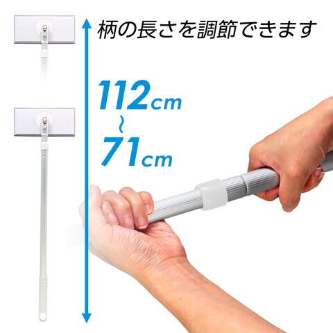 かがまずお掃除できる柄付きタイプ【伸縮柄】かがまずに楽な姿勢でお掃除ができる柄付きタイプ。柄は軽くてさびにくいアルミ製。