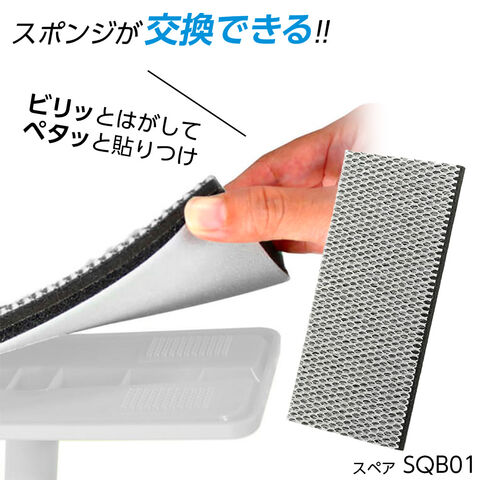 スポンジの交換可能スポンジの繊維が劣化したら、別売りのスペア(ベランダ床ブラシスポンジスペア SQB01)に取り換え可能。