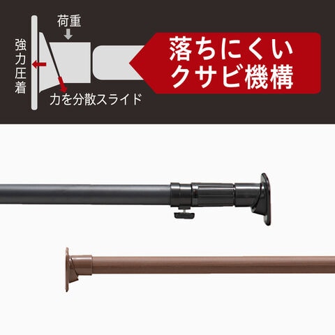 力を分散させて、強力に圧着させる「楔(くさび)」構造のつっぱりポール。