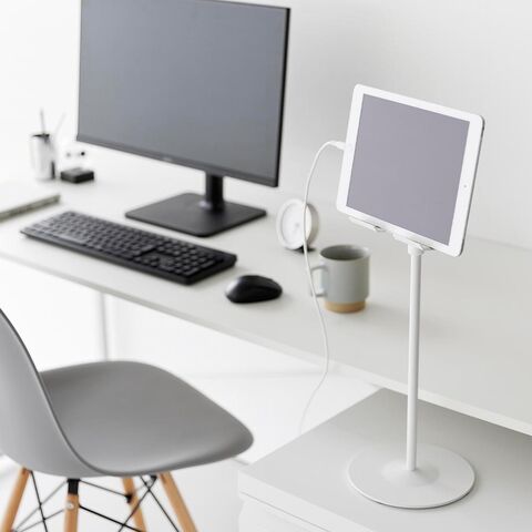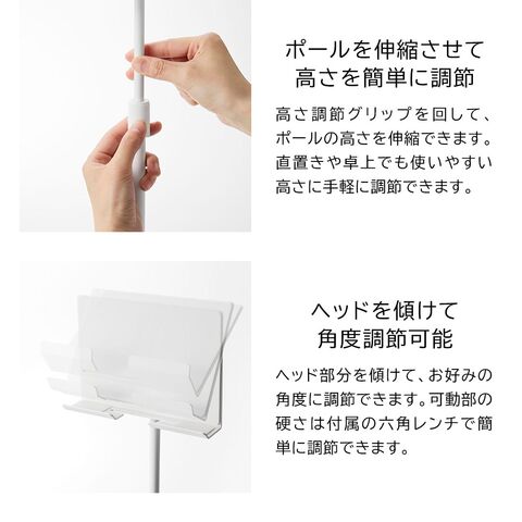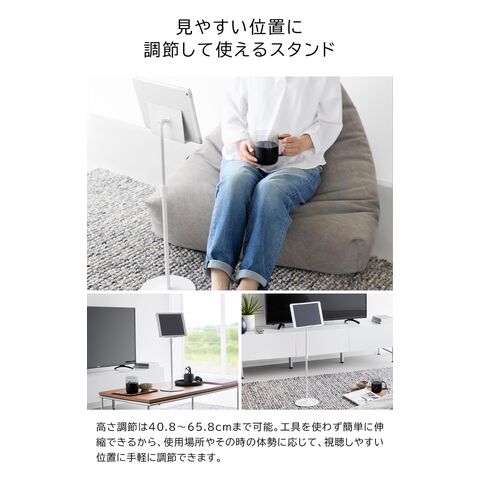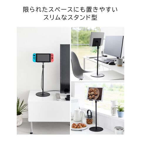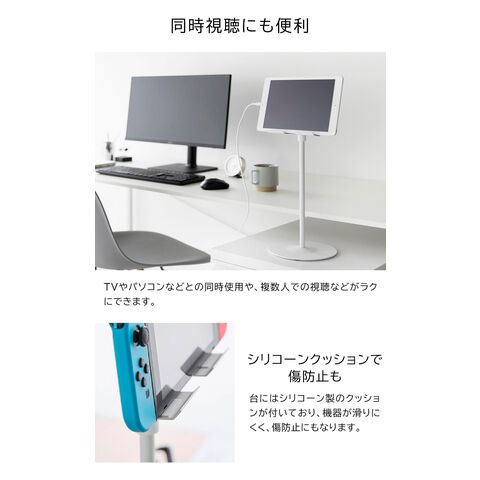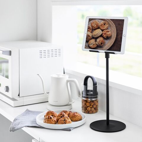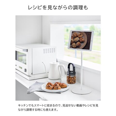 高さと角度を見やすい位置に調節でき、直置きでも卓上でも使えるタブレットスタンドです。