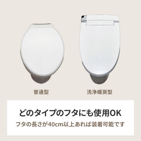 どのタイプのフタにも取付けOK普通型・洗浄暖房型で、フタの長さが40cm以上あれば装着可能です。