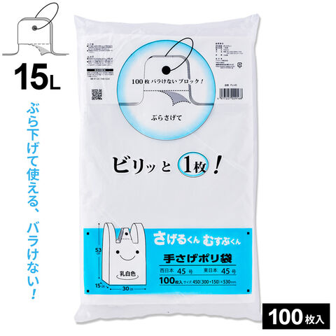 レジ袋 さげるくん てさげポリ袋(100枚入) 15L PU-45 | 吊り下げ マチつき ゴミ袋 ビニール袋 乳白色 テイクアウト てさげ袋 コンビニ 車 持ち帰り 買い物 ごみ箱 15L ぶら下げ 普段使い 普段使い