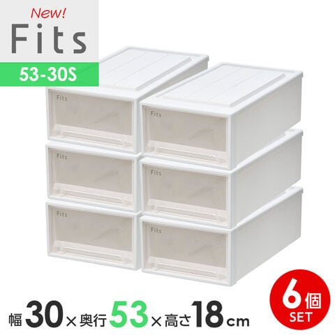 収納ケース Fits フィッツケースクローゼット 幅30×奥行53×高さ18cm ホワイトクリア 6個セット 53-30S | プラスチック 引き出し 収納ボックス 衣装ケース 押入れ収納 積み重ね ウォークインクローゼット スタッキング 衣類ボックス クローゼット収納 S-30