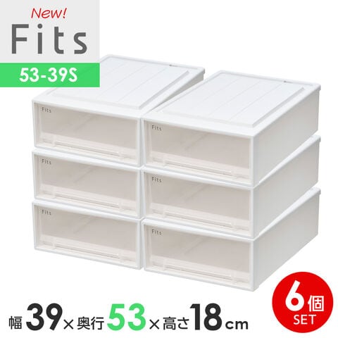 収納ケース Fits フィッツケースクローゼット 幅39×奥行53×高さ18cm ホワイトクリア 6個セット 53-39S | プラスチック 引き出し 収納ボックス 衣装ケース 押入れ収納 積み重ね ウォークインクローゼット スタッキング 衣類ボックス クローゼット収納 S-53
