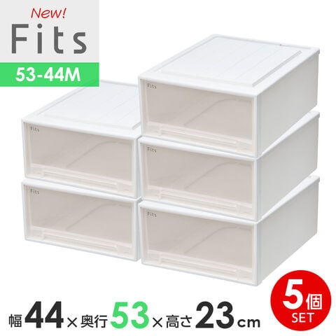 収納ケース Fits フィッツケースクローゼット 幅44×奥行53×高さ23cm ホワイトクリア 5個セット 53-44M | プラスチック 引き出し 収納ボックス 衣装ケース 押入れ収納 積み重ね ウォークインクローゼット スタッキング 衣類ボックス クローゼット収納 ワイドM-53