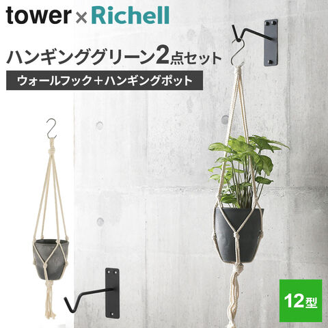 リッチェル 山崎実業 tower タワー ウォールフック & ボタニー ハンギングポット 12型 (2点セット) ブラック(鉢:ダークグレー) | 壁掛け 観葉植物 吊り下げ 吊り鉢+フック ウォール ブラケット ナチュラル インテリア 屋内用 おしゃれ 賃貸 マンション ピンフック 新居 新生活