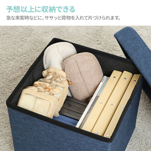 収納付きスツール テーブルにもなる収納スツール ネイビー FB-TPD03 | スツール 収納 オットマン 椅子 座る フタ テーブル チェア 折りたたみ 収納ボックス 小さめ シンプル ボックス イス かわいい おしゃれ 小物入れ ファブリック 布生地 足置き