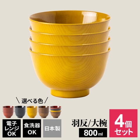 お椀 洗浄多様椀 羽反全木目(大椀) 飴色 4個セット | 食洗機対応 電子レンジOK 茶碗 汁椀 ちゃわん みそ汁 汁もの 飯椀 ご飯 はそり はぞり 丼 丼料理 麺料理 食器 軽い 樹脂 割れにくい 大きめ