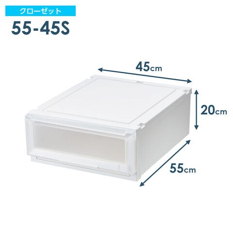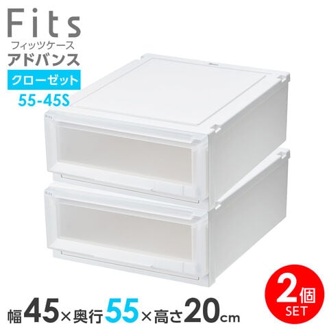 収納ケース Fits フィッツケース アドバンス 55-45S 幅45×奥行55×高さ20cm ホワイトクリア 2個セット | クローゼット用 引出し 引き出し 衣装ケース プラスチック 白 積み重ね スタッキング 衣装ボックス 服 収納 ウォークインクローゼット