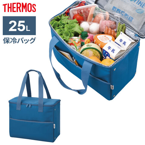 サーモス 保冷ショッピングバッグ 25L ブルー RFI-025 | THERMOS 保冷 バッグ 買い物 まとめ買い コンパクトに ポケット付き ジッパー 底板付き ボックス型 高い保冷力 断熱 クーラーバック 肩掛け