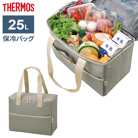 サーモス 保冷ショッピングバッグ 25L グレージュ RFI-025 | THERMOS 保冷 バッグ 買い物 まとめ買い コンパクトに ポケット付き ジッパー 底板付き ボックス型 高い保冷力 断熱 クーラーバック 肩掛け