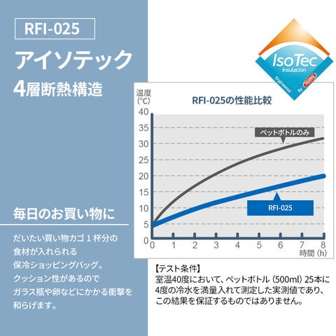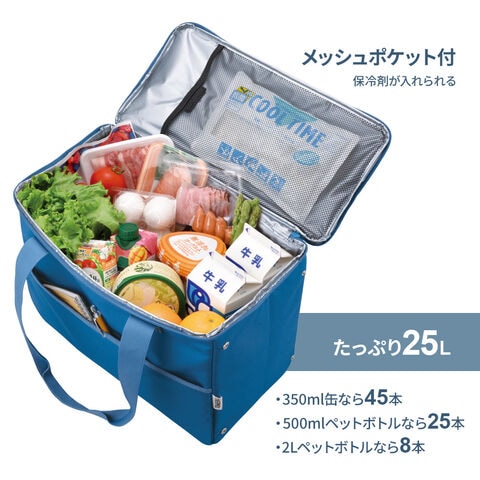 保冷力に優れた「アイソテック」4層断熱構造のショッピングバッグ。たっぷり入る25L大容量。