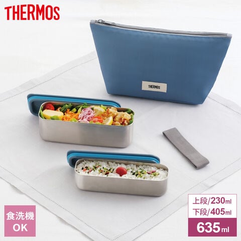 サーモス 食洗機対応 フレッシュ ランチボックス 635ml グレーネイビー DSA-605W | THERMOS 弁当箱 弁当 2段 入れ子 スリム パッキン付き ステンレス製 ランチボックス 専用ケース付き 丈夫 長持ち 冷ましやすい お手入れしやすい コンパクト ベルト付き