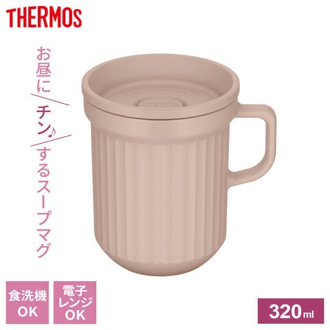サーモス 食洗機対応 スープマグ 320ml アーモンドベージュ DJU-320 | THERMOS フタつきマグ 樹脂製 軽い 電子レンジOK パッキン付き 冷蔵OK スープランチ 持ち運びできるマグ 昼食 汁物 お手入れしやすい コップ 会社 オフィス