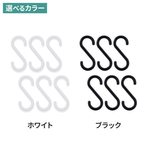 S字フック(小) ブラック 6個入 H00501 | フック ミニ 耐荷3キロ 樹脂製 丈夫 1.7cmまで タオルバー 浴室 台所 ランドリー 小物 細い所 シンプル