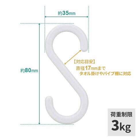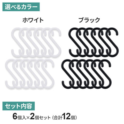 S字フック(小) ホワイト 6個入 ×2個セット H00501 | まとめ買い フック ミニ 耐荷3キロ 樹脂製 丈夫 1.7cmまで タオルバー 浴室 台所 ランドリー 小物 細い所 シンプル