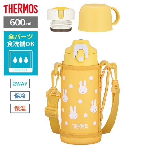 サーモス 水筒 真空断熱2ウェイボトル 600ml イエローホワイト FJJ-602WFB | THERMOS 子ども 保冷 保温 コップ付き 0.6L 直飲み スポーツ飲料OK 食洗機対応 肩ひも付き 保育園 幼稚園 小学生 習い事