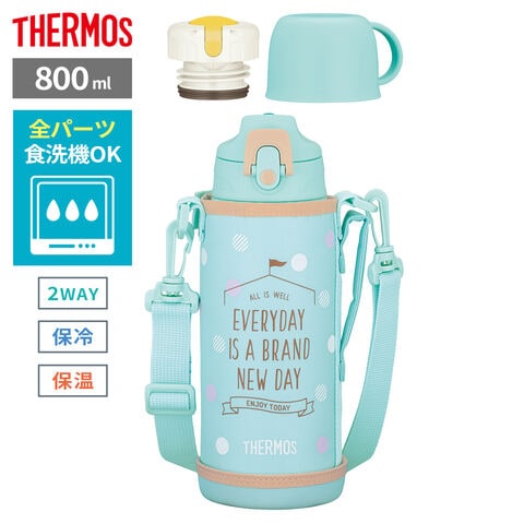 サーモス 水筒 真空断熱2ウェイボトル 800ml ミントベージュ FJJ-802WF | THERMOS 子ども 保冷 保温 コップ付き 0.8L 直飲み スポーツ飲料OK 食洗機対応 肩ひも付き 保育園 幼稚園 小学生 習い事