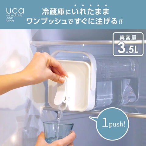 uca 冷蔵庫に入れたまま注げるジャグ MEGA TANK 3.5L グレー | ウォーターサーバー 冷水筒 麦茶ポット 棚置き 注ぎやすい お茶ポット 大容量 ハンドル付き アウトドア キャンプ バーベキュー BBQ 横置き 縦置き CB JAPAN