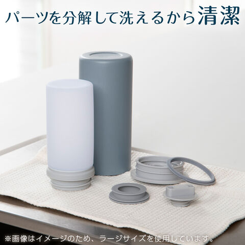 材質:内びん/ステンレス鋼 胴部/ステンレス鋼(ポリエステル樹脂塗装) 氷のう本体/シリコーンゴム 口金・ふた/ポリプロピレン パッキン/シリコーン 製氷スタンド/ポリプロピレン