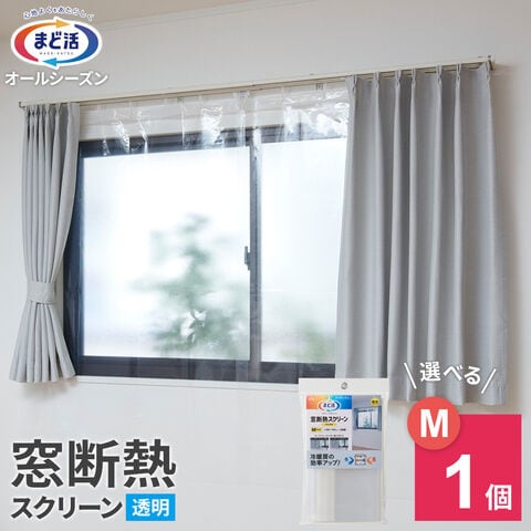 窓 遮熱 まど活 窓断熱スクリーン 採光透明タイプ M(幅100×長さ145cm) 2枚組 HN-501 | 断熱 カーテン 暑さ 寒さ 対策 省エネ 節電 エコ 冷暖房 効率UP カーテンレール オールシーズン 腰高窓