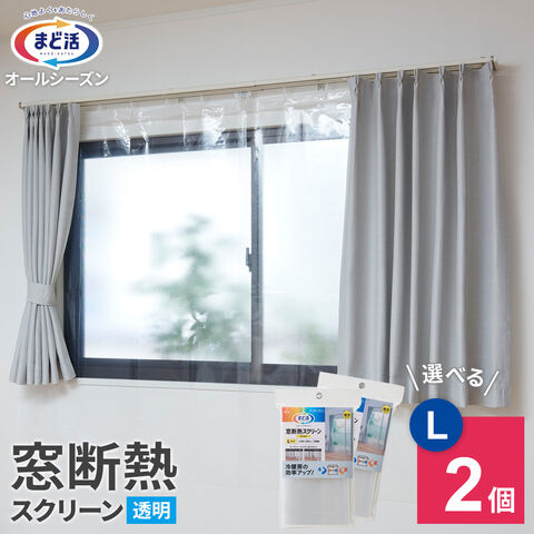 窓 遮熱 まど活 窓断熱スクリーン 採光透明タイプ L(幅100×長さ225cm) 2枚組 ×2個セット HN-502 | 断熱 カーテン 暑さ 寒さ 対策 省エネ 節電 エコ 冷暖房 効率UP カーテンレール オールシーズン 掃き出し窓