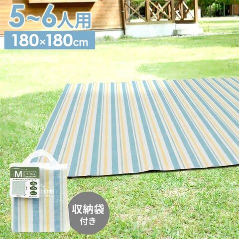 ソフトクッション レジャーシート M 180×180cm ストライプ U-Q1127 | 5~6人用 敷物 厚手 大人数 二畳 ファミリー 防水 撥水 トートバッグ お花見 運動会 ピクニック アウトドア キャンプ マット 大きい 収納袋付 柔らかい