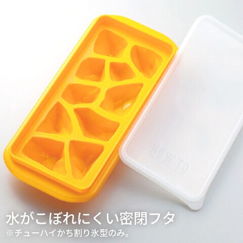 密閉フタ付きで使いやすい(チューハイ/かち割り氷型)(チューハイ/かち割り氷型)はJIS基準水漏れ試験適合の密閉フタ付き。ニオイ移りを防ぎ、おいしい氷を作れます。重ね置きができるので、大量に作りたい時に便利です。引き出しタイプの冷凍庫でも水がこぼれにくく、持ち運びの際も安心です。