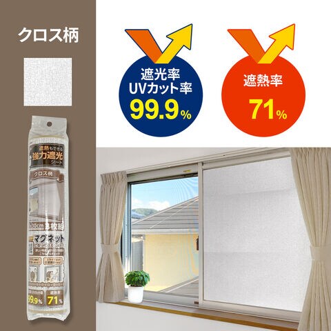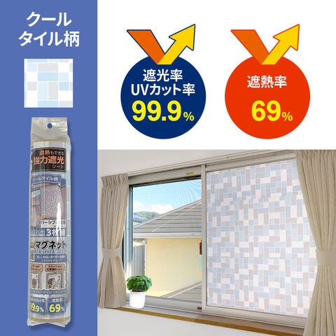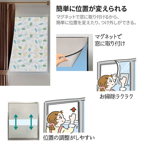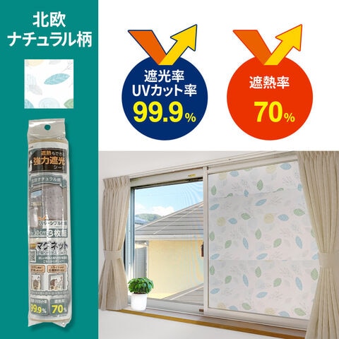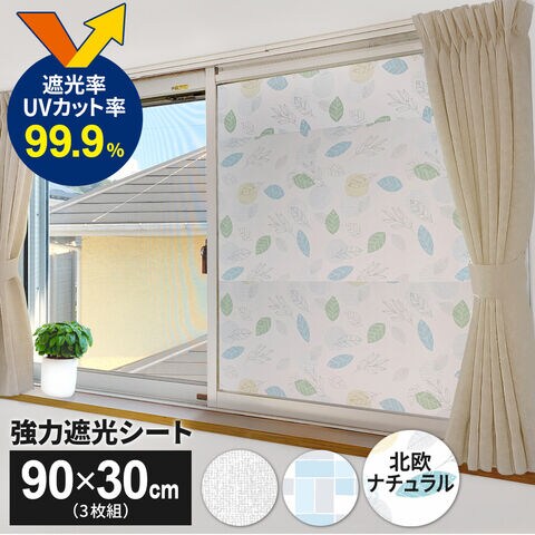 窓用 遮熱もできる 強力遮光シート 90×30cm 3枚組 北欧ナチュラル U-Q1101 | マグネット取り付け 磁石 窓枠 遮光 断熱 目隠し 省エネ 位置調節できる スライド つけ外し可能 紫外線カット 日焼け止め 目かくし UVカット 冷房効率アップ 節電 遮光シート