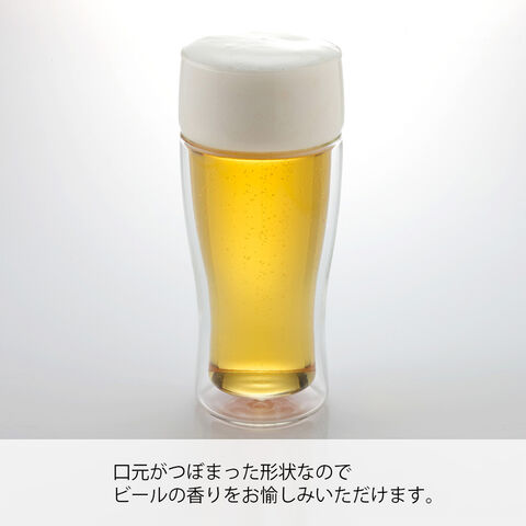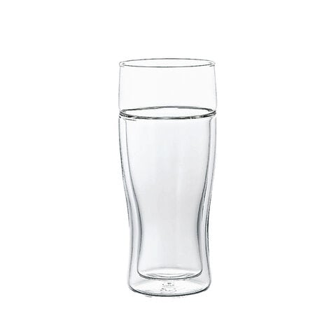熱い飲み物を入れても持ちやすく、冷たい飲み物は結露を防ぐ、二重ガラスのビアグラス。