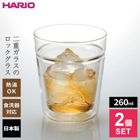 ペア ハリオ ツインロックグラス 260ml ×2個セット TRG-260 | ウイスキー ガラス 焼酎 ラム 日本製 お酒 透明 オンザロック ロック 持ちやすい 食洗機OK 熱湯OK 宅飲み 家飲み 贈り物 プレゼント 誕生日 父の日 母の日 景品 ダブルウォール 居酒屋 ダブルウォール
