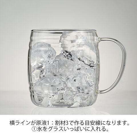 グラスの横のラインはお酒を作る時に便利な目安線になります。上から2番目のラインは液体と泡が7:3の目安です。