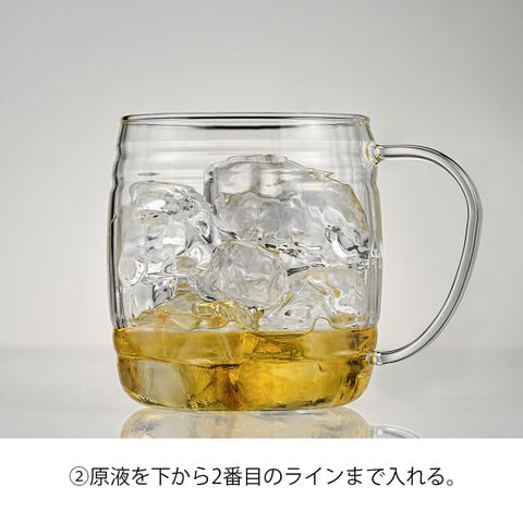 お酒やホットドリンク、スープにも使える!大容量の樽型耐熱グラス2個セット。